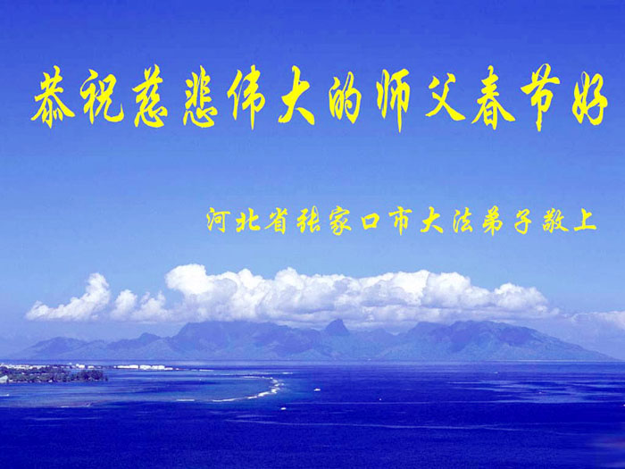 我们以无比崇敬的心情向师父道一声:师父新年好! 广东客家大法弟子敬拜 2003年2月1日 河北省张家口市大法弟子恭祝慈悲伟大的师父春节好