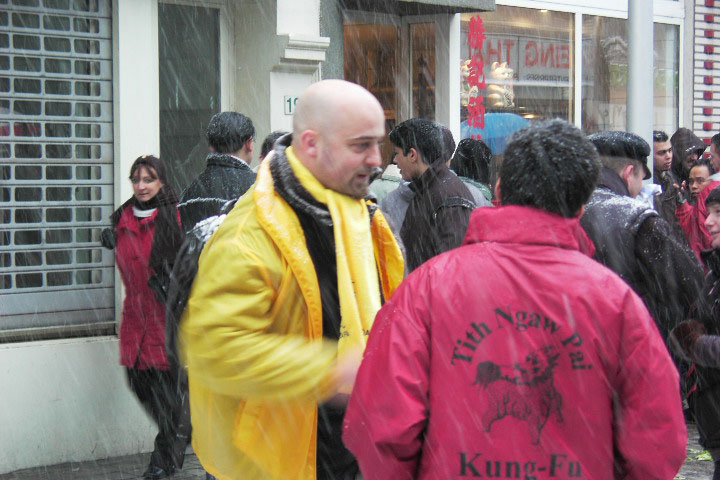 图片报道:新年伊始 比利时法轮功学员街头洪法