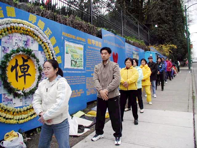 | 【明慧网2003年4月9日】最近,加拿大温哥华学员针对起诉江××案作了交流。有学员谈到,前一阶段对起诉江XX案重视不够,把这件事当成是那些起诉学员的负责的众多项目中的一个,觉得有他们在做就可以了,自己则光顾着自己手头的正法工作。讨论中大家充分认识到这是跟我们每个大法弟子都密切有关的大事,将迫害大法的人间首恶绳之以法,一大批受蒙蔽的世人就会清醒,就能得到救度。起诉的过程与成功的结果将会对我们讲清真相产生很大的影响。因此每个大法弟子都必须时刻保持正念,头脑清醒理智,全世界大法弟子形成一个整体,强大正念之场,坚持做好正点发正念,不给邪恶钻空子。同时积极利用起诉事件来讲真相,告诉中国人,伸张人间正义。 4月6日周日下午1点至5点,大家来到中领馆前集体发正念,坚定清除另外空间迫害大法的邪恶因素,尤其以强大正念清除针对即将进入下一步法律程序的起诉江××案的任何干扰。温哥华学员互相提醒将继续保持正念、密切关注起诉案的每一步进展,并及时在法上交流,整体提高认识。   学员们在讨论中还谈到,针对中国大陆诬陷法轮功的邪恶电视剧的出笼,我们也必须加强正念,及时清理另外空间的邪恶因素,不能让这样的谎言再去毒害可贵的中国人民。 |