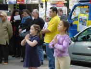 下午约3点半,学员在巴黎第十三区华人聚居的中国城进行了同样的游行活动。     今天,游行队伍所到之处,场面喜庆、祥和,强烈吸引着熙熙攘攘的过往行人。人们非常高兴能拿到真相资料,不少人询问如何炼功、究竟为什么迫害法轮功,学员们一一回答他们的问题。 游行中有一个很有意思的小故事。一个学员向一位观看功法展示的先生递法轮功真相资料,这位先生表情严肃地表示不要。学员心里有些为他感到惋惜。过了好一会儿,他突然说:“你们的功法能使人轻松,你们都很和平,对不对?”又过了一会儿,说:“我还知道中国政府迫害你们,就象所有独裁者一样,对不对?”学员听到这儿,为他明白真象而由衷地感到高兴。 游行开始不久,太阳周围出现一巨大光环。一些不修炼的人士说,法轮功学员的许多活动中都会出现这种奇异现象,不信不行呀。光环持续了一个小时。 游行中,学员还接受了法国国际广播电台的采访,向听众介绍“世界法轮大法日”、揭露江××集团对法轮功的迫害完全建筑在谎言与残暴之上,并将法轮功学员以反人类罪等起诉江××一事广而告之。