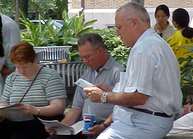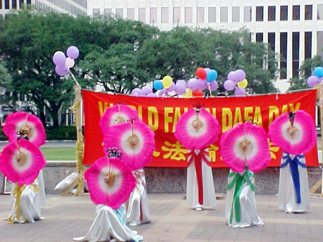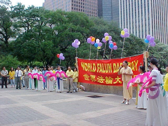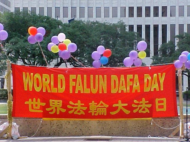 【明慧网2003年5月14日】休士顿大法弟子于5月10日至11日庆祝“世界法轮大法日”。今天的庆祝活动在市政府前举行。