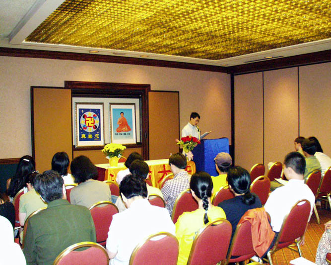 从纽约法会回来后,大家都受到了极大的震动。每个学员都在深刻地反省自己。对自己做得不够好,或长期没有去掉的执著在严肃的思考。大家认识到法是庄严的,神圣的,慈悲的,同时也是有标准的。每个修炼弟子不仅肩负着救度众生的使命,同时也将成为未来无边宇宙各个大穹的王和主,享有无上的荣耀,同时也是宇宙中一切正的因素维护者。所以怎样修正自己是至关重要的,也是含糊不得的。最初在准备法会的发言稿时,很多学员都有一种心态,觉得自己修得不好,写出来不能让同修得到启发;还有的学员反观自己,越看执著越多,就越动不了笔。到法会开始的前两天都还没有几篇稿件。开法会,是大家共同的心愿。尽管学员在准备稿件初期有各种各样的心性上的干扰,但作为一个大法学员,大法弟子,大家本着对自己、对法负责的心理,在互相的提醒和鼓励下都认认真真地准备了发言稿。 法会在一片庄严,祥和的气氛中开始。学员们在发言中坦诚相见,对自己在修炼中存在的不足做了深刻的剖析,每一位在场的学员都深受感动,大家沐浴在一片祥和慈悲的气氛中。几位没有准备发言稿的学员也纷纷上台畅所欲言。值得一提的是,这次法会,学员在交流中冲破了旧有的观念,提到了很多在修炼中自己一直存在的误区或长久以来一直干扰自己的不好的思想。每个学员都感觉受益颇多。法会快要结束时,大家还意犹未尽,都不愿离开。 结束之前。两位西人学员把收集的历年来学员在一起学法炼功,参加洪法、正法活动的一些照片,编辑在一起,进行了配乐演示。大家共同回顾了几年来一起走过的路程,点点滴滴,是那么熟悉亲切,又是那么纯洁和珍贵。大家能够在一起共修一部法,共同完成一个心愿是师父赋予我们的无上荣幸。“伟大的法,伟大的时代,在造就着最伟大的觉者!”(“弟子的伟大”)珍惜吧,同修们,这是历史上从来都不曾拥有的辉煌灿烂!