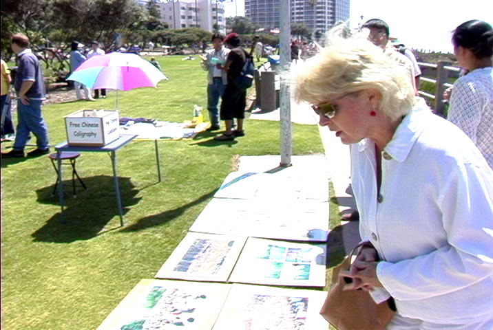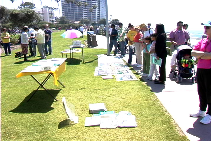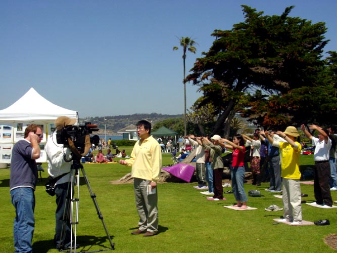 在资料台上,学员们放上了各种讲真相的材料、光碟等供游人索取。祥和优美的功法和悠雅的音乐吸引了众多过往的行人与游客,有几个西方人情不自禁跑到队伍中,和学员们学练功法。当地中、英文电视台到场进行了采访。这次活动有些平时较少出来参加活动的,和一些新近得法的学员及家人,都积极参与了。活动期间,部分学员还抓紧时间,互相交流,以便在今后的大法活动中,互相配合,做的更好。
