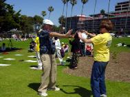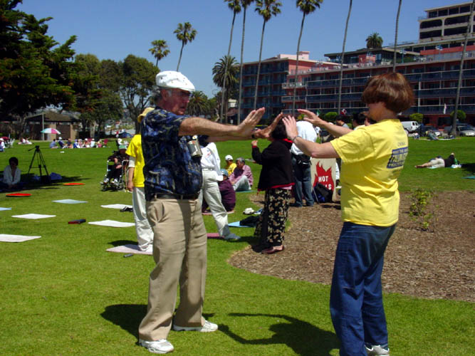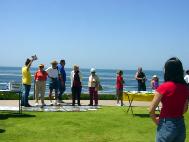 【明慧网2003年5月15日】在第四个“世界法轮大法日”暨师父传功11周年纪念日到来之际,5月11日,圣地亚哥法轮大法弟子齐集当地著名的旅游景点拉荷亚海滨公园,以集体炼功、发正念、功法和图片展示的方式洪法和讲真相,庆祝节日的到来。