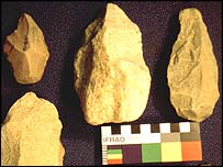 该小雕像附近发现了类似的石斧。白德纳理克告诉BBC在线的记者说,“我们所发现的是一块大体是自然形成的石器。石器上有一些人工修饰,但不光光是修饰。”