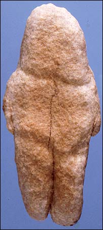 一位史前艺术专家说,这块古老的岩石上有人类雕凿的明显痕迹。这尊长约6厘米的石器看上去像一个人物,凹槽代表脖颈,胳膊和腿。表面有红色雪花状物质,可能是涂料的遗迹。 该石器是在靠近坦坦城的德拉拉河北岸侵蚀台地的地下15米处发现的。据说,石器离距今五十万到三十万年前欧洲早期石器文化中期的地层中发现的石斧才几厘米远。 文化界争论 关于人类开始使用符号象征的时间问题的争论原本已十分炽烈。估计这项发现将会火上浇油。先前认为生活在欧洲早期石器文化时代的原始人,比如海德堡人和直立人,不具备象征思维能力,而这一能力是创造艺术所必需的。 国际石制艺术组织联合会(IFRAO)主席罗伯特.白德纳理克(Robert Bednarik)在发表于《当代考古学》杂志的文章中说,发现于坦坦城的那尊石器的外形是自然形成的。 但他说,石器表面似乎是强调人类外型的明显凹槽,部份是人工刻成的。白德纳理克称,一些凹槽是由不断以石制工具打击该石器表面的天然纹理而加工成的。