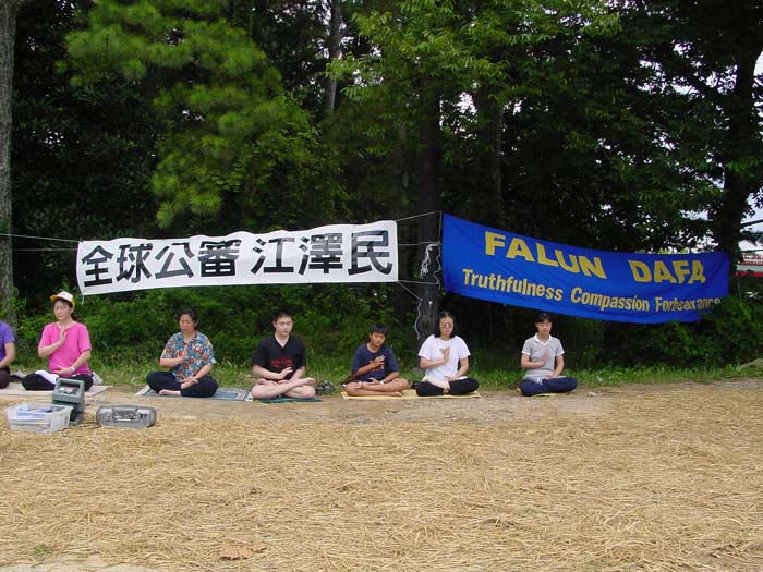 【明慧网2003年6月18日】6月14-15日,美国佐治亚州亚特兰大市大法弟子在公园讲真相、发正念,支持全球公审江泽民。