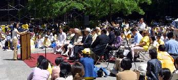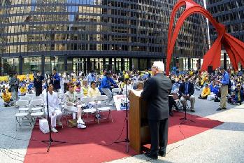 【明慧网2003年6月23日】 宣读对法轮功的褒奖状 6月21日星期六,超过1,000名学员参加了在芝加哥联邦广场举行的新闻发布会并支持诉江案