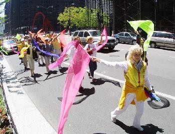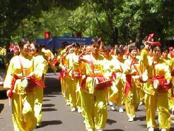 同日同时,前来声援芝加哥诉江案和参加美中地区法轮大法修炼心得交流会的大法弟子们还在芝加哥的另一地点——中国城,举办了一场上千人的欢庆游行,庆祝法轮大法洪传11周年。       在21日(星期六)芝加哥中国城浩大的游行队伍中,三名小弟子的舞蹈表演吸引了众多观众。她们不停地跳了很多遍,一直坚持到游行的终点。本来考虑到这样蹦蹦跳跳太累,没有安排她们参加游行,但她们都要求参加游行。虽然由于鞋子不很舒适脚有些痛,但她们还是那样高高兴兴,没有一点抱怨。 在星期五芝加哥联邦广场和汤姆森中心的两场文艺演出中,小弟子们表演的舞蹈“万象新”,清新活泼,尤为令人喜爱。她们虽然来自美中三个不同的州,但她们却配合得很好,短短几天的时间就排练出了这个舞蹈,她们在一起排练、玩耍,也一起读《转法轮》。 在两天的活动中,她们活泼的身影给人们留下了深刻的印象。她们不仅赢得了很多路人和观众的赞扬,也通过美丽的舞蹈把法轮大法的美好带进了人们的心田。 |