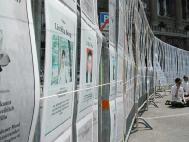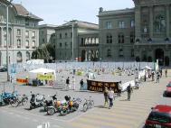 2003年7月12日,瑞士学员在首都伯尔尼联邦广场邀请了各大媒体和各界人士,举行了新闻发布会。为了悼念751位被害者,学员们设计了一个42米长2.5米高的“悼念墙”,墙上主要悬挂着被害者的照片以及他们被迫害的情况。“悼念墙”吸引了许多过路人,媒体以及游客。法轮功学员们在这次活动中展示了5套功法。在新闻发布会上学员们回顾了4年来江政府对法轮功的残酷镇压和时事,如“非典”和香港的恶法23条。“基督行动反对迫害”(ACAT)非政府组织的发言人发表了演讲,学员们还朗读了一些议员的支持信件。 “把江××送上法庭”是这次活动的主题。学员们主要介绍了在美国控告江××的过程,并要求媒体、政治家和民众一起来审判江××以及它的帮凶。 整个活动被视为对江××以及其帮凶的一次在道德法庭上公开审判。新闻发布会结束后,学员们游行到中国大使馆。一部分学员留在联邦广场上继续向过路行人介绍法轮功,回答他们的问题,征集签名,播放录像,散发报纸。 42米长的“悼念墙”上的被害者的照片吸引和感染了许多过路行人。许多人把注意力集中在墙上的介绍,上面描述了受害者如何被迫害之死的经过。整个墙已经使人们清楚地意识到这场迫害的严重性及其规模。许多人都谈到:“我知道你们被迫害,但是,我不知道的是,情况是如此的糟糕。”墙上的900多张照片打开了人们的眼睛,人们明白了迫害的严重性。 花圈和鲜花显示了我们对被害者的悼念。有位先生问到:“你们有没有中国使馆的地址,邮件地址或者网络地址,我们应该阻止他们,强烈抗议中国政府的这种行为。”许多人都走完了42米长的“悼念墙”,了解到了真相。学员们向感兴趣的人们散发了自作的荷花。有些过路人要学炼法轮功。“悼念墙”以其独特的方式获得了许多过路人对我们的理解和支持。
