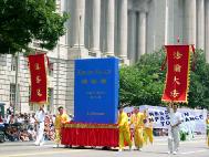 今天,在首都华盛顿,60多个来自全美各地,由不同族裔组成的团体聚到富有象征意义的宪法大道上,以盛大游行的方式,庆祝这个对世界历史都产生了巨大影响的日子。华盛顿首都7月1日的气温高达华氏95度,为了防止可能发生的恐怖袭击,游行现场还设置了多个检察站。虽然如此,但人们仍旧热情不减,很多家庭扶老携幼的赶来参加庆祝活动。1776年7月4日,由托马斯.杰弗逊起草的《独立宣言》正式被北美第二届大陆会议通过。它石破天惊,开宗明义地向世界宣布了这个年轻的独立国家的立国之本和民族精神。那就是:人人生而平等,造物主赋予他们不可剥夺的权利,其中包括生命、自由和追求幸福的权利。 227年后的今天,美国早已成为世界上最强大的国家。在经历了911恐怖袭击事件,经济走入低谷,以及伊拉克战争之后,人们又是怎样感受今天这个有着特殊意义的日子的呢? 美国军乐队鼓手克里斯波赫:「今年我们特别感到要继续保持美国传统的价值和道德标准的重要。要做到这一点,我们必须意识到我们都是美国人,我们要团结在一起。7月4日意味着民主,意味着人们追求自由、幸福的权利,同时让自己的能力得到最充份的展现。这是美国之所以成为美国的全部含义。」 来自中国上海的朱先生谈了他的观感:「我看到这里的节日气氛是很强的、很浓烈。而且很多人很早就在马路两边,准备看游行。全家都来了,一条马路都是这样的。它这里节日气氛相当强烈。同时也看到这里的人,好多地方都挂着美国国旗,都是自发的这样,不是人为组织的。感觉美国人的爱国心是很强烈的。这个给我感觉很深。」 在享受着欢快的乐曲和精彩表演的同时,人们也增强着对独立日的理解和感激,并更加珍惜由此带来的自由和繁荣。 今年法轮功游行队列同时出现在美国费城、华盛顿DC的队列之中。法轮功队列庞大,将中国传统节目舞龙、腰鼓、唐装、仙女等东方文化呈现在美国宪法大道上。 法轮功学员崔爱东说:“唐朝出现在中国历史全盛时期,中华文化博大、宽容,与美国今天的地位相似,我们特别将唐朝文化,再现给美国人民。”她还说:“法轮功学员修炼真、善、忍,传承了中华文化的精髓,能有机会在美国国庆游行上,将东方文化表达出来,让全世界人了解中华传统文化是有意义的。” 当法轮功学员队列出现在美国宪法大道上,许多人都惊讶地说不出话来,随即报以热烈掌声。路边的观众不断传出“这就是中国人”的喊声。美国人约翰说:“我们心目中的中国人就是这样。” 法轮功学员仙女队,将中华女性外柔内刚、楚楚动人的东方美表达出来,路边不断地有观众冲入队列,与仙女合影。 中国文化是修炼的文化,讲究天人合一,内敛、蓄而不发,外柔内刚。令美国人羡慕不已。许多美国人询问路边的法轮功学员有关如何修炼法轮功的问题,有的观众还在路边学炼法轮功功法。法轮功创始人李洪志1994年在中国传授法轮功期间,曾开玩笑说“以后学气功,可能都要乘飞机到国外去。” 不幸言中。法轮功在中国遭到四年的残酷镇压,江泽民下令焚烧法轮功书籍,大量抓捕法轮功学员。在国外,法轮功迅速流传开来,在全球五十多个国家和地区受到欢迎。在中国购买不到法轮功书籍,现在都利用到海外旅行、公干,获取有关法轮功的真实消息。 中华古老文化有这样古训“一日为师,终身为父”。海外法轮功学员在江泽民政权诬陷他们师父的时候,凭藉坚韧的意志,向全球讲述法轮功真实的故事,成功阻止了中国政府企图在海外延续对法轮功的打压。中国国内的法轮功学员,四年来在白色恐怖下,广泛地向中国人讲述法轮功真相,江泽民想在短期内铲除法轮功的企图破灭,这场耗费约四分之一国力的镇压,骑虎难下,正走向失败。 马州一家华人来看表演,汤先生说:“法轮功学员的故事,显现中国传统文化的精髓,古老中国人就是这样的性格。法轮功学员说,要感谢美国社会四年来给予道义上的支持,这是美国人在兑现历史责任。 2003年7月4日耗资近1.8亿美元,占地160,000平方英尺的国家宪法中心终于竣工。坐落在费城市中心,面对自由钟的美国国家宪法中心将于7月4日开幕。国家宪法中心在1988年由里根总统签字初建。1999年由以设计教育性博物馆见长的Ralph Appelbaum联合会完成设计。Ralph Appelbaum的交互性博物馆设计是现代历史上包括美国纪念大屠杀博物馆等几个重要博物馆的核心。 当年在独立革命成功之后,邦联条例于一七八一年生效。一七八七年五月,费城的州议会大厦举行了制宪会议,一些在殖民地政府、州政府、大陆会议、法庭或者在战场上有经验的领袖人物出席了会议。他们经过了十六个星期的深思熟虑,草拟的宪法终于在一七八七年九月十七日,在出席的各州的一致同意之下签署了。 宪法直接以人民为基础。宪法的第一句话就是“我们,合众国的人民”。美国的宪法核心有以下几点:首先是人民主权,然后是天赋人权;社会契约;三权分立;权力制衡;政教分离;军政分离和公民的自由权。美国政府的运作和自由的维持,实际是仰仗美国在当时世界乃至现代社会都称得上神来之笔的美国宪法。 人民主权提出政府的权力来自人民,目的在于保护人民的生命。 被中国江泽民镇压四年的法轮功学员,7月4日,脚踏美国首都宪法大道、行进在美国旧首都费城,将东方文化显现给美国人民,别具意义。