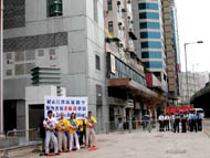 | 【明慧网2003年9月6日】2003年9月3日,法轮功学员在香港就去年「阻街案」的判决进行上诉。上诉的法轮功学员表示他们在代表北京政府的中联办门外和平请愿是符合中国宪法和香港《基本法》赋予人民的权利的。 据香港南华早报9月5日以题为“法轮功的抗议没有阻街”的文章报导说,昨天,代表法轮功学员上诉的律师夏博义(Paul Harris)在法庭上陈述指出,去年法轮功成员在北京中联办公室外的抗议不应该因为警方担心他们可能冒犯行人而被阻止。 他说,和平集会的权利是受权利法第17条保护的;权利法第17条重申了国际民权和政治权利公约中的第12条的内容。夏博义律师还向法庭陈述说当时到底什么举动算作阻街很不明确,因为抗议者们没有占用整个人行道,也没有去接近过往行人。     图片说明:上诉者的律师在辩词中指出,去年在中联办前门的行人路长十三点七米,宽九点五米,行人稀少,该段道路属不准停车或横过马路的地带,很明显如此一条行人道要容纳任何小至中型的和平游行,不会构成太大的不便。律师指警方在请愿当天以至接着几天放在中联办前门的铁马,比请愿人士占用的地方要大,那才是真正的阻街。美联社在9月4日的报导中说,辩护律师挑战法庭的判决,他说法轮功在中联办外的抗议是合法的,并没有造成阻碍。报导引述法轮功学员的话说,判决表明中国政府的镇压已经延续到了香港。 美联社在前一天的报导中说,法轮功在中国大陆被禁止,但在于1997年回归中国的前英殖民地香港是合法的,香港依然在当地政府的管辖下享受着西方式的民主。但是,一些提倡民主的立法者和人权活动家认为香港的自由日益恶化。其中一名被指控的学员卢洁于星期二称这次上诉是对香港的法制能否战胜政治压力的一次考验。 香港明报9月4日报导,上诉人律师表示,中联办门外一段道路宽阔,学员静坐事实上没有造成阻碍,而学员当时正进行示威,权利受《基本法》保障,警方只能在有必要的情况下,才能作出阻止。