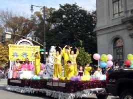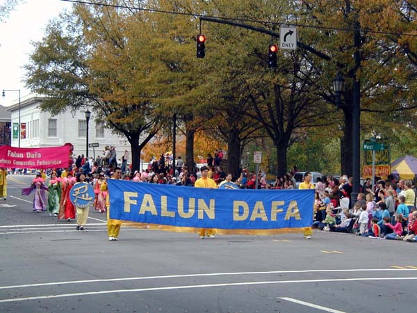 【明慧网2004年11月28日】2004年11月20日,来自美国北卡州三角区、夏洛特(Charlotte)及威明顿(Wilmington)的法轮功学员共同参加了北卡洛丽市(Raleigh)第60届圣诞节大游行。  法轮功学员的游行队伍受到观众欢迎 |   法轮功学员的游行队伍受到观众欢迎 |