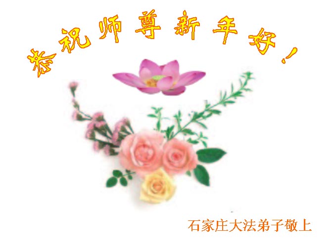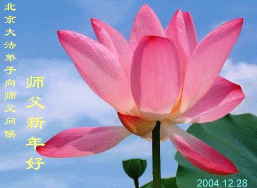 新年快要到了,我代表石家庄的大法弟子向尊敬的师父问好。 同时也向海外同修问好。感谢你们对国内同修的帮助,愿我们同心同愿共同完成好师父所要求的三件事。 石家庄大法弟子 2004、11、28 北京亚运村、大屯全体大法弟子恭祝伟大、慈悲的师尊新年好!