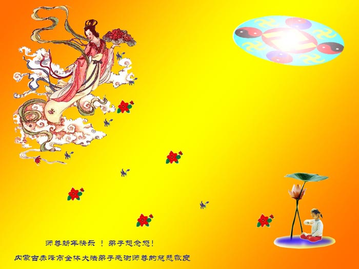 我们应该做好三件事,不辜负您的苦度和期盼,谢谢师尊! 2004年12月27日 内蒙古全体大法弟子恭祝师尊新年快乐!