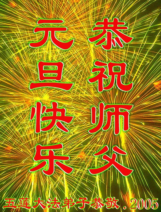 在新的一年即将到来之际,我们恭祝师尊新年好!我们向师尊保证:做好三件事,决不辜负师尊的慈悲救度,请师尊放心。  抚远县全体大法弟子合十 2004年12月28日 武汉市大法小弟子恭祝师尊新年快乐!