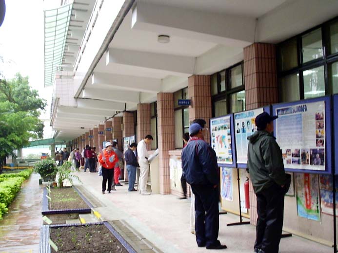 |  |  | | 法轮功五套功法表演 | 家长们聚精会神地看法轮功正法之路真象图片展 |