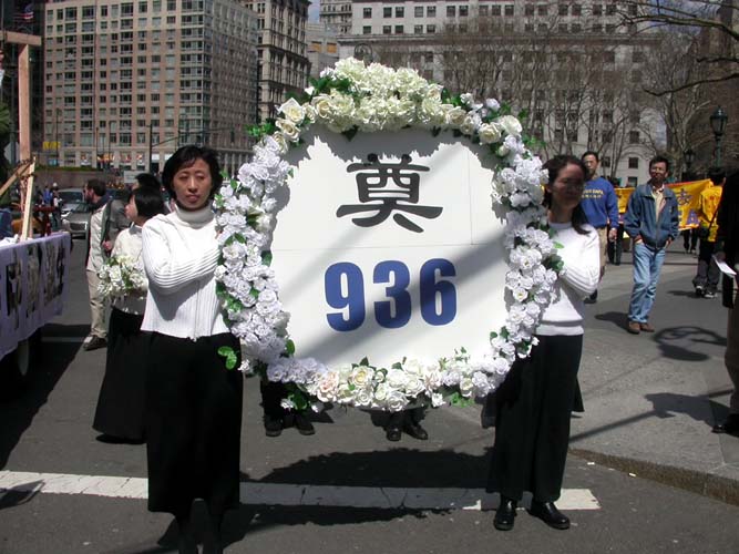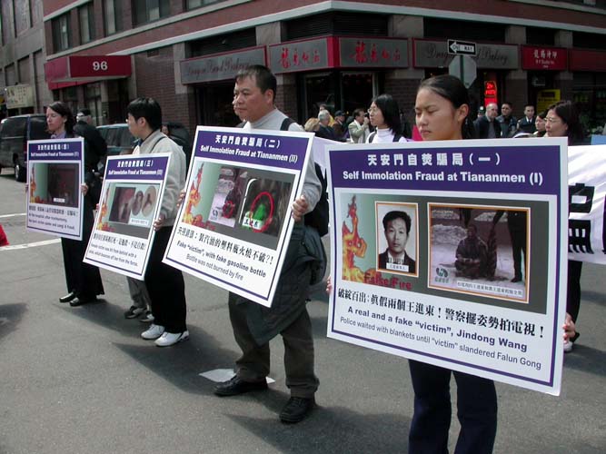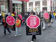 【明慧网2004年4月13日】(明慧记者楚天行报道)从密苏里州赶来参加此次纽约游行的法轮功学员毛女士告诉明慧记者:“我看到很多中国人开始不愿意或者不敢接传单,有位饭店老板接了传单赶快转给店里的墨西哥人雇员。但当演示迫害的卡车走过来时,人们都愣住了,心灵受到极大震撼,手不由自主地伸向了法轮功学员递过来的真象传单。”