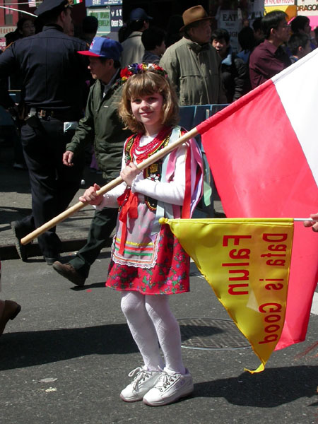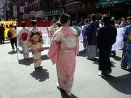 上左:身着民族服饰的日本法轮功学员;上右:瑞典小姑娘平时和妈妈一起修炼法轮功,此次也参加了纽约大游行  上图:在逆境中仍为社区和节日带来传统文化和精神鼓舞的法轮功学员腰鼓队,他们正在打鼓的间歇为纽约观众演示法轮功的第一套功法“佛展千手法”  上图:法轮功学员表演的民族舞蹈在社区传播着中国文化,给沿途观众带来节日的快乐,同时也展示着法轮功学员的精神追求与心灵境界