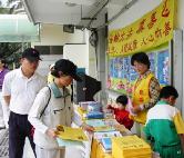 法轮功学员展位前功法表演 |   法轮大法图片展 |   法轮大法真象资料展位 |
