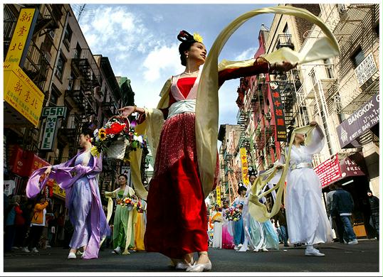 【明慧网2004年4月24日】美国《时代》杂志4月10日报导,数千名法轮功学员在纽约市中国城游行。游行的目地是呼吁停止迫害中国的法轮功学员。