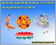 洪法十二年,巨难担万千; 师尊圣诞日,感恩庆无边。 弟子敬贺师,南粤扬正念; 除恶救众生,证实法当先。 深圳法轮大法弟子恭祝师尊传法十二周年!
