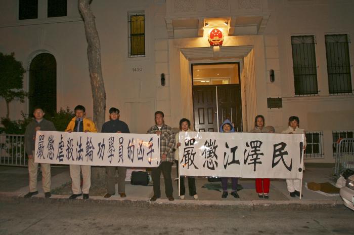 【明慧网2004年5月13日】根据明慧网资料统计,五月份又传来多位中国法轮功学员被迫害致死的案例,致使被迫害致死的法轮功学员人数增加到958人。5月10日傍晚,北加州法轮功学员来到中国驻旧金山总领馆前静坐请愿,呼吁停止迫害,并要求严惩凶手,把江泽民送上审判台。