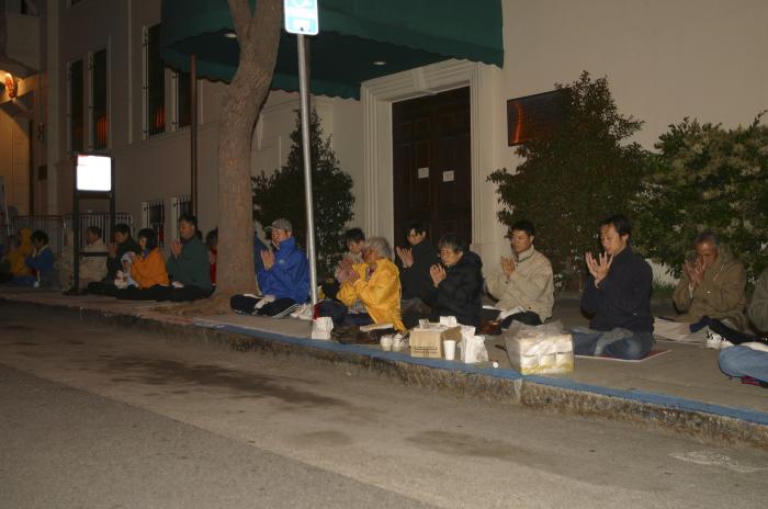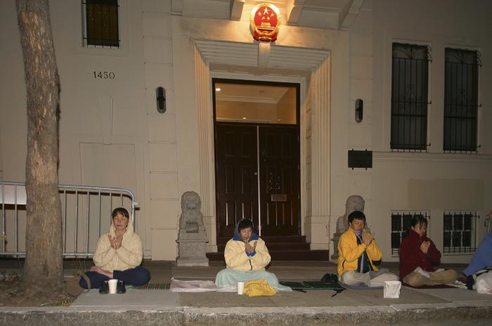 法轮功学员在中领馆前要求严惩凶手 |  在领馆前请愿 |  在领馆发正念 |