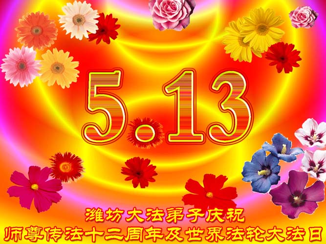 潍坊全体大法弟子庆贺师尊传法十二周年及第五届世界法轮大法日!