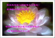 恭祝慈悲伟大的师父生日愉快! 谨代表佳木斯的大法弟子向师父致以最崇高的敬意! 甘肃庆阳市大法弟子恭贺师尊华诞暨法轮大法洪传十二周年