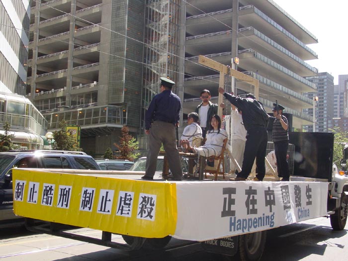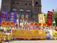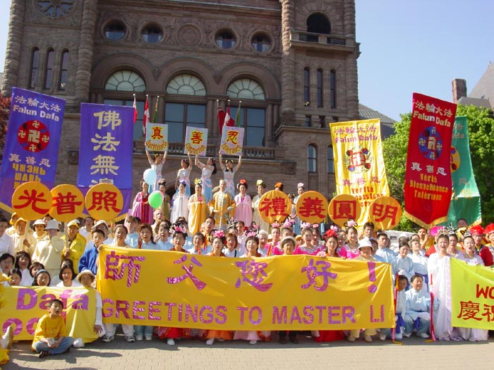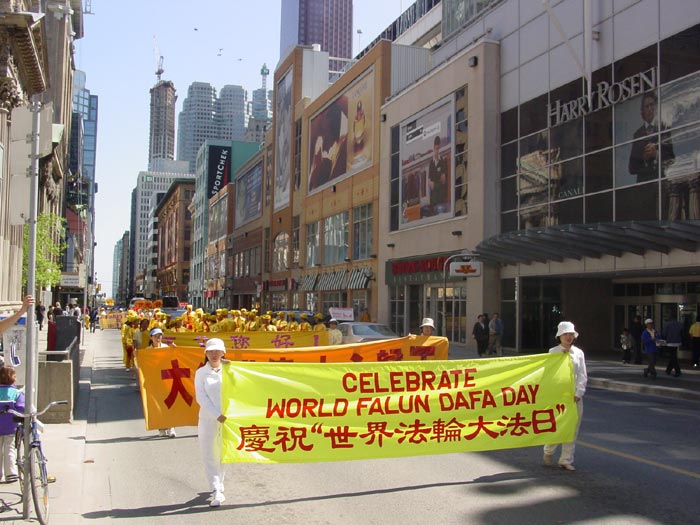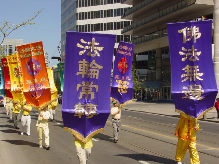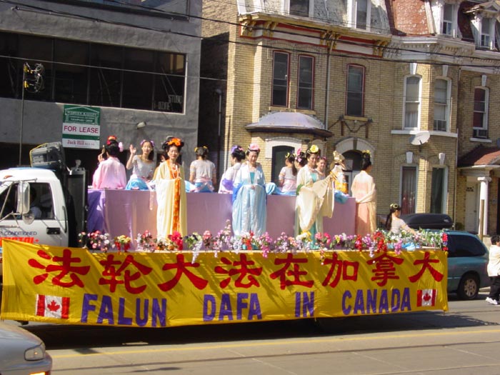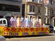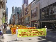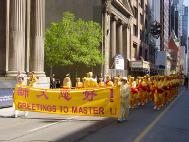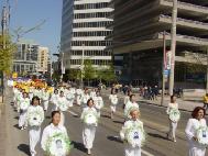 游行摆出五大方阵展示法轮功的发展历程,鼓队、舞蹈队、舞狮队和唐装仙女花车充满欢庆气氛。人们一方面被大法的美好所感动,另一方面又被法轮功学员正在遭受的迫害而震惊,许多人主动的索要真象资料,许多人表示:我支持你们。