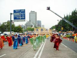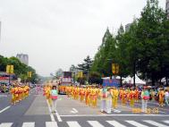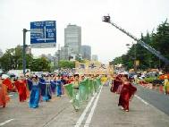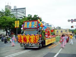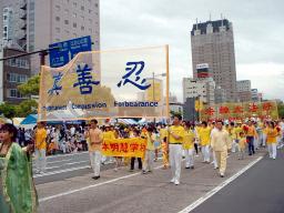 近几年来,法轮功学员在日本频频亮相各种社区活动,渐渐融入了这个强调尊重人权的社会。人们很难想象在世界60多个国家广受欢迎的这样一个民间修炼团体,在中国却正遭受著残酷的迫害。开幕典礼正午在和平纪念公园举行。为原子弹爆炸牺牲者默哀后,广岛市的秋叶市长为本次花节的标志——花之塔的和平之灯点火。 中国新闻社出版中心长、本届花节执行委员会的企画实施部部长六拾部先生告诉记者,除了日本各地参加游行的社团外,此次亦有韩国传统武术访问团的表演,而有众多华人参与的法轮功队伍这是第三次参加花节了。记者询问他是否知道在发源地的中国大陆,法轮功由于受到镇压已经有至少949人死亡。他表示知道,在日本,花节执行委员会尊重信仰自由,欢迎法轮功参加花节游行,介绍法轮功的理念和活动。 绵长的和平大道沿途设有广播台向观众介绍游行团体,并由当地电视台实况直播。法轮功的队伍由腰鼓队,花车,唐装,仙女,日本明慧学校等几部分组成。腰鼓队的英姿飒爽,仙女的翩翩起舞,唐装的雍容典雅不时引起两旁观众的阵阵掌声。法轮功学员在展现了中国传统文化的同时,也把法轮大法的美好带给了广岛市民。 善良的广岛市民给与法轮功队伍很高的评价。有些人跟着花车上炼功的学员学起炼功动作。看到美丽的仙女有些人大声喊:仙女真漂亮。有一位日本老人指着法轮功的队伍,告诉孙女说:快招手!神仙来了。很多中国人更是看得目瞪口呆,惊叹于大法的美好。有两位从大陆来的中国人,一位是大学教师,另一位是干部,硬是冒雨跟着学员们的游行队伍来到和平公园。他们打着伞在雨中听学员讲了近一个小时的法轮功真象。他们提的很多问题,学员们都一一做了回答,最后那位干部表示要学法轮功,另一位大学教师知道真象后则说我以前都不知道这些,并拿了很多真象资料,记下了大法网址,表示一定好好了解法轮大法。 当法轮功队伍依次经过田中町,三川町,白神,大手町和和平纪念公园街区时,反复响起女播音员亲切、活泼的介绍:“现在走过来的是身穿漂亮衣饰的法轮功的人们。哎呀,腰鼓队来了,美丽的天女伴随‘真善忍’三个大字的花车登场了。真就是真诚的真,善就是善良的善,忍就是忍耐的忍。就是说要按真善忍的标准做好人呀。法轮功是健康效果绝佳的高层次气功,在全世界众多的国家流传……每周在和平公园有2小时的免费教功。大家一定去学学看呀!” 女播音员似乎对这支队伍特别钟爱。在队伍走完全程前,连续播送了三遍。清脆悦耳的声音回荡在广岛市上空,空气中似乎漾满了欢乐祥和的音符。 游行表演结束之后,大家又参加了舞台表演,古典舞,功法表演,民族舞表演,最后在“为你而来”的歌声中结束。当天法轮功学员们的游行队伍结束之后,就下起了雨。值得一提的是,很多观众撑着雨伞,在雨中观看完学员们的表演。 舞台表演的同时,在繁华的商店街中,曾因发放法轮功真象资料而在大陆被非法关押一年半的法轮功学员金子容子進行了街头演讲。学员拿着“法办江××”的横幅、介绍迫害的情况。当人们听到在大陆已经迫害致死的学员多达949人时,难以相信这世上还在发生着这么惨酷的迫害。金子容子在中国的劳教所被关押期间,广岛市民很关心她的安危,很多市民都能认出她。通过她的被迫害事实,日本人民更加认识到了迫害的邪恶。 游行之前,学员们在公园排练时,有几位摄影爱好者扛着摄影机一个劲追着拍照,看他们的神态,仿佛找到了很好的素材,一定是大法的美好感染了他们。