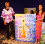 作为一名业余画家,夏琼芬提到她的绘画的能力是来自于天生的。在修炼法轮功之前,她的作画只是为了取悦大家而画。7年前开始修炼法轮功以后,作画风格有所改变,一种宁静,沉稳,愉悦的风貌,渐渐呈现在画布上。夏女士介绍道:“自从修炼法轮功以后,我认为自己从内心改变了。我开始感觉我的心变的非常纯净,安宁和舒服。我感觉要把它表达出来。特别是看人们炼功时。我能感觉到他们炼功时的平和舒适。当我开始画这副画时,(一位女孩伸展手臂炼功的画)我试着将那种感觉表现在这画面上,我真希望当人们看到这幅画时也能感到和平与舒适。”她随后说:“李洪志先生将这套功法传出已有12年了。5年前,中国政府规定禁止修炼法轮功。中国政府通过媒体制造谎言,当时有1亿多人修炼,很多修炼者遭到迫害。这是套性命双修的功法,刚才我所讲的是修身的部分,修心部分我们追寻的是宇宙真,善,忍特性来修。”在回答记者关于为什么江氏集团会采取镇压甚至是迫害的原因时,夏女士回答道:“我认为是因为有上亿的人炼这套功法,这一数目远远超过中共党员的人数。导致了中共政府[江泽民小集团]出于忌妒的镇压。其实呢,这套功法是告诉修炼者不要参与政治的。中共[头子江泽民]的镇压导致很多修炼者遭受迫害。近千人死亡,十多万人还被关押在劳改营里。” 本次采访结束后的第二天,即4月30日晚,五十万人口的夏乐市民看到了这个有关法轮功正面报道的节目。