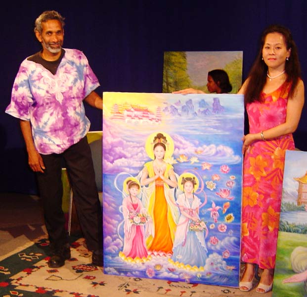 【明慧网2004年5月8日】4月29日,美国北卡州夏乐市业余画家,法轮功学员夏琼芬接受了21频道“心路历程”主持人米盖尔-坎那候的专访,畅谈的主题是“创意的过程”,并利用这个机会向夏乐市市民介绍法轮大法以及江氏集团对法轮功的严重迫害。
