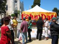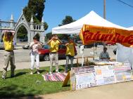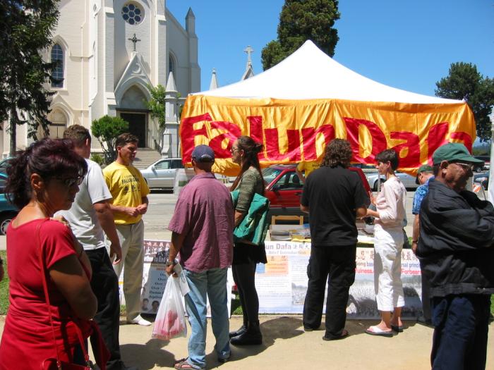 【明慧网2004年6月21日】6月19日,法轮功学员应邀在北加州圣塔-克鲁斯(Santa Cruz)市举行的一年一度的日本文化节集市上展示功法,并介绍法轮大法。一些西方学员参加了这次的洪法活动。