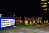 大费城地区的法轮功学员及其亲属中,很多人都遭到迫害。学员李江帆的哥哥李白帆因炼法轮功被迫害致死,医生杨景端的姐姐杨景芳、邱庆庆博士的妹妹邱艳艳至今仍被关在劳教所,来自新泽西州的陈刚亲身遭受了在劳教所里18个月的折磨。 陈刚说:“就是这一天,中国全面开始镇压法轮功。第一年的7.20我被抓。第二年的7.20我被关在看守所。第三年的7.20我还在看守所。第四年我从看守所被放出,当地警察,还在监视我;第5年的7.20,也就是去年的7.20,我终于有机会来到了美国,脱离了那个镇压的环境。” 手捧蜡烛、站在自由钟前的马太•申卡楼(MATTHEW SHINKAROW )两年半前开始修炼法轮功,他说:“我今晚来这里,是来支持法轮功,让人了解法轮功学员在中国受到的迫害。就是几年前的今天,上千的法轮功学员被捕。”他说炼法轮功让他丢掉了很多以前不好的生活习惯,比如吸烟、喝酒等等,让他开阔眼界,知道了真实的一面。 “刚才听他们念在镇压中已经被证实迫害死的学员的名单,我心里非常难受。因为我经历过这个迫害,我知道迫害中被折磨的痛苦。而他们被迫害致死。非常好的人,我身边就有2个人被迫害致死,他们不应该失去生命。”陈刚说,“我希望所有人都能来制止这场迫害。我希望明年的这个时候,镇压将不再存在。”