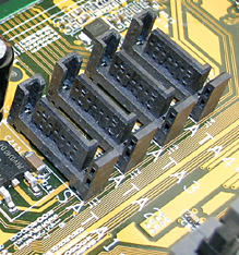 具有raid功能的电脑主板(这种主板有4个IDE接口,可直接连接8个IDE设备,就不用购买转接卡了) |  PCI转IDE的转接卡(型号:PROMISE Ultra 100TX2) |  PCI转IDE的转接卡(型号:PROMISE Ultra 133TX2) |