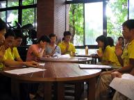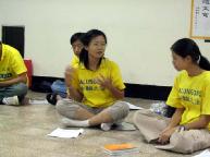 此外,也有青年学子提到关于学校内社团运作的情形。目前在台湾有超过十八个大专院校校内有法轮大法的社团,透过这一次的交流,让更多青年学子能够了解社团内彼此的状况,同时也分享在向社会各界讲清法轮大法真象上自己做的比较好的地方。比如以举行音乐会的方式、影片展的方式等充分让校内师生能够认识真象;在大陆团访问学校期间让大陆学者能够了解真象等。 这一次青年学子营特别于活动最后一天下午举行青年学子心得交流法会,是第一次由台湾的青年学子独立举行的小型法会。这一次共有九位青年学子上台发言,发言主题包括自己在军中的修炼过程与学员透过参与媒体讲清真象的心得交流等。比较特别的一点是一位大陆青年学子透过EMAIL的方式发表了他的修炼心得体会,他提到自己运用自己的便利条件在工作中讲清真象的体会,让现场参加的青年学子体会到自己也要在正法修炼的道路上更加精進才行。整个学法交流活动就在法会的发言中圆满结束,参与的青年学子也互相勉励在修炼的道路上要彼此提醒,共同精進实修。