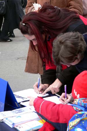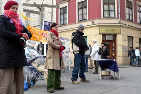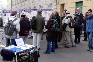学员在发送传单的时候注意到很多人都听说了法轮功,并前来了解更多情况。许多人受到发生在中国境内的事而触动,他们对捷克法轮功学员援救同修所做的努力表示由衷的支持。 |