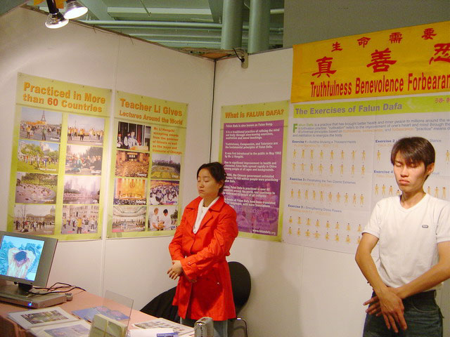 | 【明慧网2005年10月18日】2005年10月7日至9日,丹麦首都哥本哈根市最大规模的健康博览会召开了。丹麦法轮功学员为了让更多人了解法轮功,参加了博览会,在此摆放了展位,并举办了两场讲座。三天的活动中,有许多人得以与法轮大法结缘。法轮功学员的展位 为了参加博览会的洪法活动,许多学员重新调整了自己的工作时间;几位刚得法不久的西人新学员也主动前来,加入洪扬大法的行列。一些学员精心制作了几百朵美丽的纸折莲花,莲花的中心写着:“法轮大法好!”,以及法轮功相关网站的地址。 人们经过展台时,常常被学员的演示功法所吸引,还从学员们微笑着递上的法轮功真象资料和纸折莲花中得到一份惊喜。这里的祥和慈悲之场,给人们留下深刻的印象。  学员精心制作的纸折莲花 |  了解真象 |