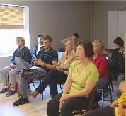 法轮大法,对许多人来说已经不陌生了。许多人一看见学员们的炼功动作,就会说:“哦,法轮功!” 一个多月前,丹麦法轮功学员,对前来丹麦参加国际会议的中共总检察长,610头目之一的贾春旺,以“酷刑罪”提出起诉。此事,在这个具有尊重人权,平等自由传统的国度里,得到了人们普遍的支持。各大媒体对法轮功受迫害真象進行了大量正面报道;并有许多读者来信,表示对这场迫害感到义愤。  讲座中,人们听的很专心 |