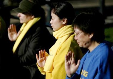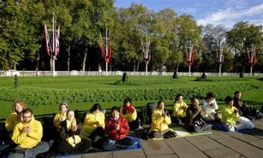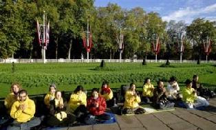 | 【明慧网2005年11月10日】(明慧记者编译报导)包括美联社、英国广播公司、泰晤士报、英国独立报等多家媒体报导了胡锦涛访英期间,法轮功学员呼吁停止迫害的请愿活动。法轮功学员在白金汉宫前请愿 (美联社图片) 英国独立报2005年11月9日刊登记者Jonathan Brown的文章说,在英国诺丁汉大学(University of Nottingham)任教的法轮功学员邵力(音译)见证了中共对法轮功的迫害。 邵力博士说,有2800名法轮功学员因他们的信仰被迫害致死。20万人被关押在劳教所,其中包括他在广州当会计师的妹妹。他的妹妹因在伦敦举办法轮功教功班而在中国被捕。她现在被迫每天要在花卉工厂做14小时的苦役,没有分文报酬。 邵力博士说,“警察见到她炼功后,就把她双脚悬空铐在门顶上。英国政府未曾向中共提出此一案例。布莱尔首相也未向中共头目提出法轮功议题。” 文章说,在胡锦涛在伦敦期间,法轮功学员还在白金汉宫外举行烛光请愿。 昨天,英国法轮功学员采取法律行动,申请将迫害法轮功学员的中共商务部长薄熙来拘捕归案,薄熙来被指控酷刑折磨法轮功学员。
