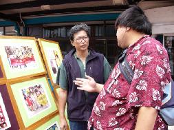 照片上的洋人男士听法轮功学员介绍摄影作品背后的真实故事后,他又主动向女朋友讲述法轮功学员在中国遭迫害的情况,还要女朋友签名声援营救在中国受迫害的法轮功儿童。   我支持你们 |