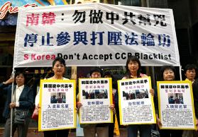 在胡锦涛访韩及釜山亚太峰会期间,韩国政府屈从于中共的压力,对前来请愿的各地法轮功学员采取阻挠、干扰及限制人身自由等手段,其中包括: 1. 在胡锦涛抵达韩国前,11月14日,应邀赴南韩国会作学术演讲的台湾法轮功学员、经济学家张清溪教授,在仁川机场被无理扣押长达两个小时。11月15日,香港法轮功学员刘惠卿也在机场被无理拒绝入境,并于16日早上被强行遣返香港。事件显示韩国当局接受了中共提供的“黑名单”,非法阻止法轮功学员入境。 2. 严厉限制法轮功学员的正常请愿活动及剥夺他们的合法权利,包括在16日的一次集会结束后,南韩警方围堵学员一个小时不让离开。 3. 最少3名韩国学员因为运用合法权利,呼喊法轮大法好或展示同样字句的横幅而被当局拘捕,据悉南韩当局要对其中一名学员罚款,并要对另一名学员提起诉。 从韩国归来的香港法轮功学员以亲身经历证实,他们在胡锦涛访问韩国期间進行和平请愿,受到不公正对待。10名学员从入境韩国后,一直受到韩国警员与便衣的贴身跟踪。不论他们吃、住、行、坐车,甚至如厕,韩国警察都不放过。学员胡女士说:“每一天早上,我们还没有起床,已经有警察等着我们,然后我们出去哪里,他们都跟着我们去。” 另一位刘女士谈到17日早上的情景,当胡锦涛在早上10点离开酒店前往国会时,大批警察把酒店外面集会的学员拦住,一个小时后才放行。她说:“都是防暴警察把我们包围起来,更不可思议的是,不让我们走动,不让我们出入,等于我们的人权被剥夺了。” 自从入境开始,学员就对韩国人员讲真象,他们都表示,知道法轮功学员是好人,只是上级的命令要执行。韩国人员对被非法遣返的刘惠卿说:“不是你的问题,也不是我的问题,这是政府的问题。”有警察向学员透露,是中共外交部直接致电韩国当局,要求他们严厉限制法轮功的请愿活动。 11月17日,刘惠卿被非法遣返回香港的第二天,在港的法轮功学员便去到韩国驻香港总领事馆请愿,要求韩国政府不要跟随中共打压法轮功,包括接受中共提供的入境“黑名单”。