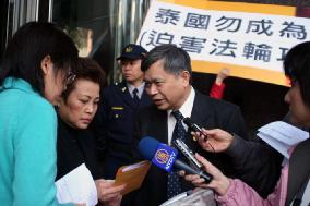 据中央社12月16日报道,台湾法轮大法学会成员二十余人,今天前往泰国驻台北经济贸易办事处抗议,呼吁泰国政府重视人权;泰方驻台官员则表示会尽快将台湾法轮大法学会的要求传达给泰国政府。。 将近二十位台湾法轮功学员今天下午二时前往泰国驻台北经济贸易办事处抗议,并递交抗议书,整个活动过程理性平和。 这项活动由法轮大法学会理事长、台大经济系教授张清溪率队;他表示,今天的活动主要是抗议泰国警方在本月稍早曾强制驱离在中国(中共)驻曼谷大使馆前面静坐的一群法轮功学员。整个抗议活动,在泰方驻台官员接受抗议书后,约十五分钟结束。