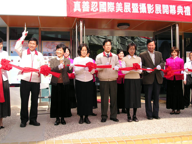【明慧网2005年12月18日】“真善忍国际美展暨摄影展”于2005年12月4日在金门县社会福利馆揭开序幕,为了造福广大的金门乡亲,让更多的人能在便利的条件下听闻法轮功真象,展览共巡回三个乡镇展出一个多星期。 展出过程中,深获不同年龄层观众的敬佩与好评,其中包括校长、教师、学生、家庭主妇、公车司机、金门藉美术家、公务员、营造商等。  台湾福建省秘书长翁明志、卫生局局长陈天顺、开萱国小校长刘海心、台湾法轮大法学会曹慧玲女士出席致词剪彩 |