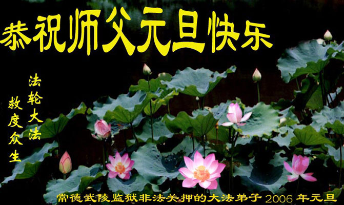 至尊至敬的师父:您好,我们京山县全体大法弟子恭祝师尊新年快乐。一晃邪恶镇压已经6年多了,我们在摔摔打打中度过了这6年,这其中不知渗透着多少师尊的关爱和呵护,谁言寸草心,报得三春晖!师尊说过:我什么都不要,只要我们那颗向善的心。我们唯有精進报答您那绵绵不绝的慈悲。 全体京山大法弟子2005/12/20 天津市和平区大法弟子敬祝师尊新年快乐!