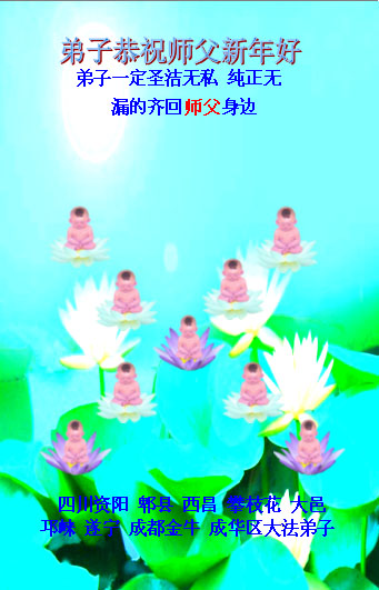 四川资阳、郫县、西昌、攀枝花、大邑、邛崃、遂宁、成都金牛、成华区大法弟子恭祝慈悲伟大的师尊新年快乐