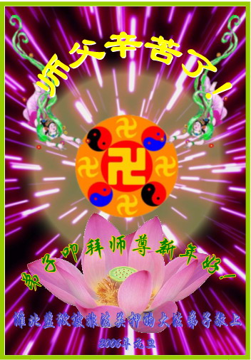 感谢师父救度之恩!我们一定遵照师尊的教诲,在修炼的道路上勇往直前,走正最后的路! 北京大法弟子2005年12月 大连大法小弟子祝师父新年好