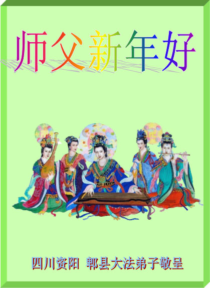 四川资阳、郫县大法弟子恭祝慈悲伟大的师尊新年快乐